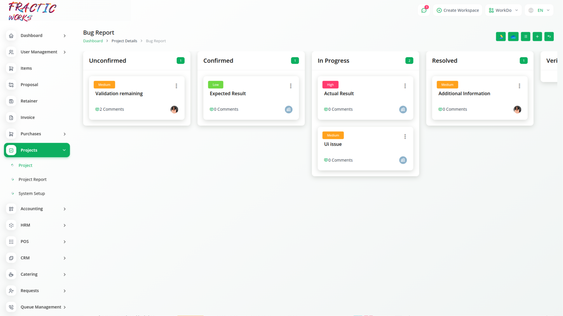 Log, assign, and resolve bugs with ease. Set priorities, update statuses, and manage issue workflows through drag-and-drop Kanban boards and intuitive filters.