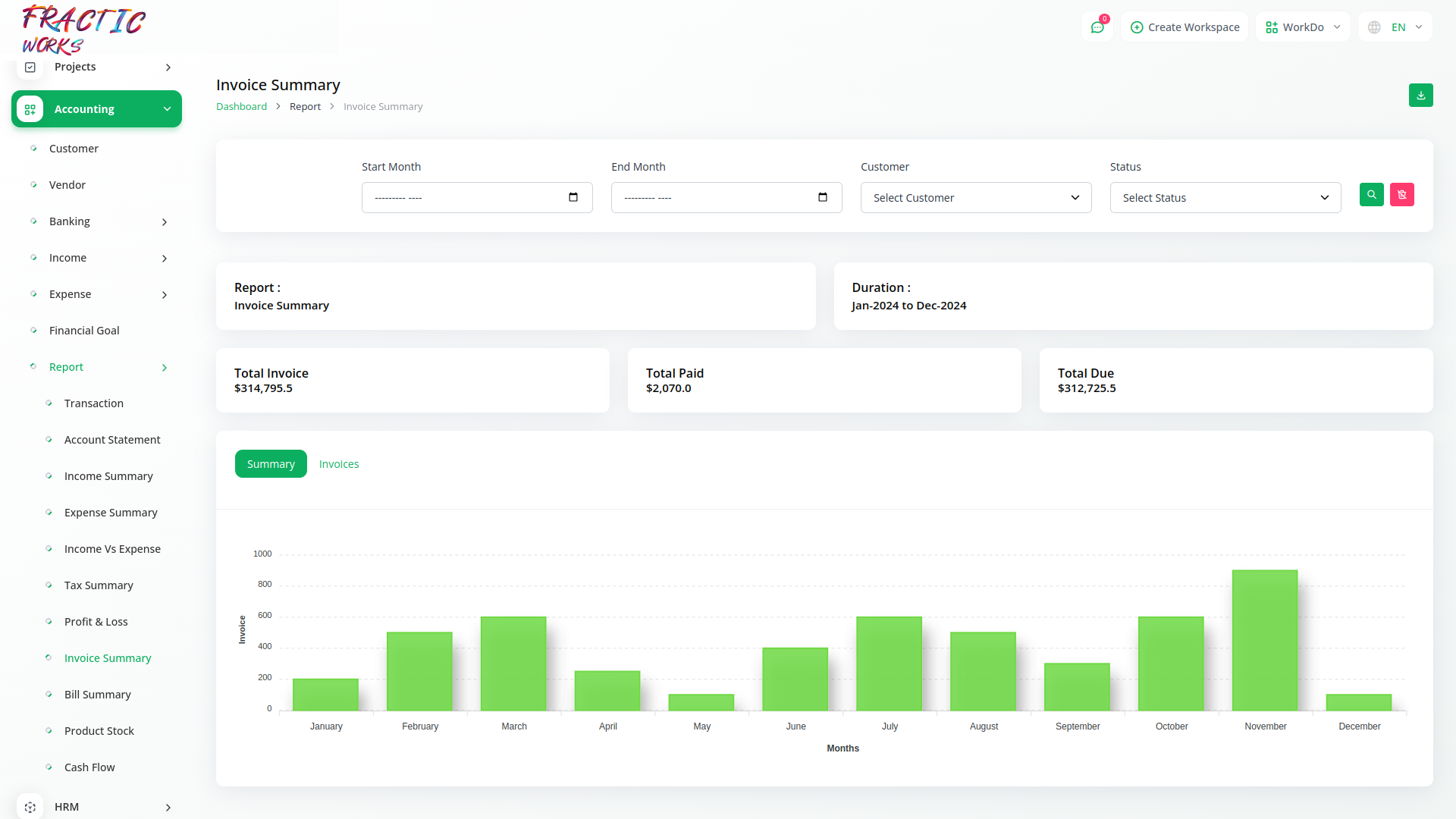 FracticWorks Accounting simplifies revenue tracking and financial management. It offers intuitive tools to monitor income, expenses, and overall financial health. With clear dashboards, real-time reports, and both graphical and tabular insights, you can make smarter, data-driven decisions with ease.